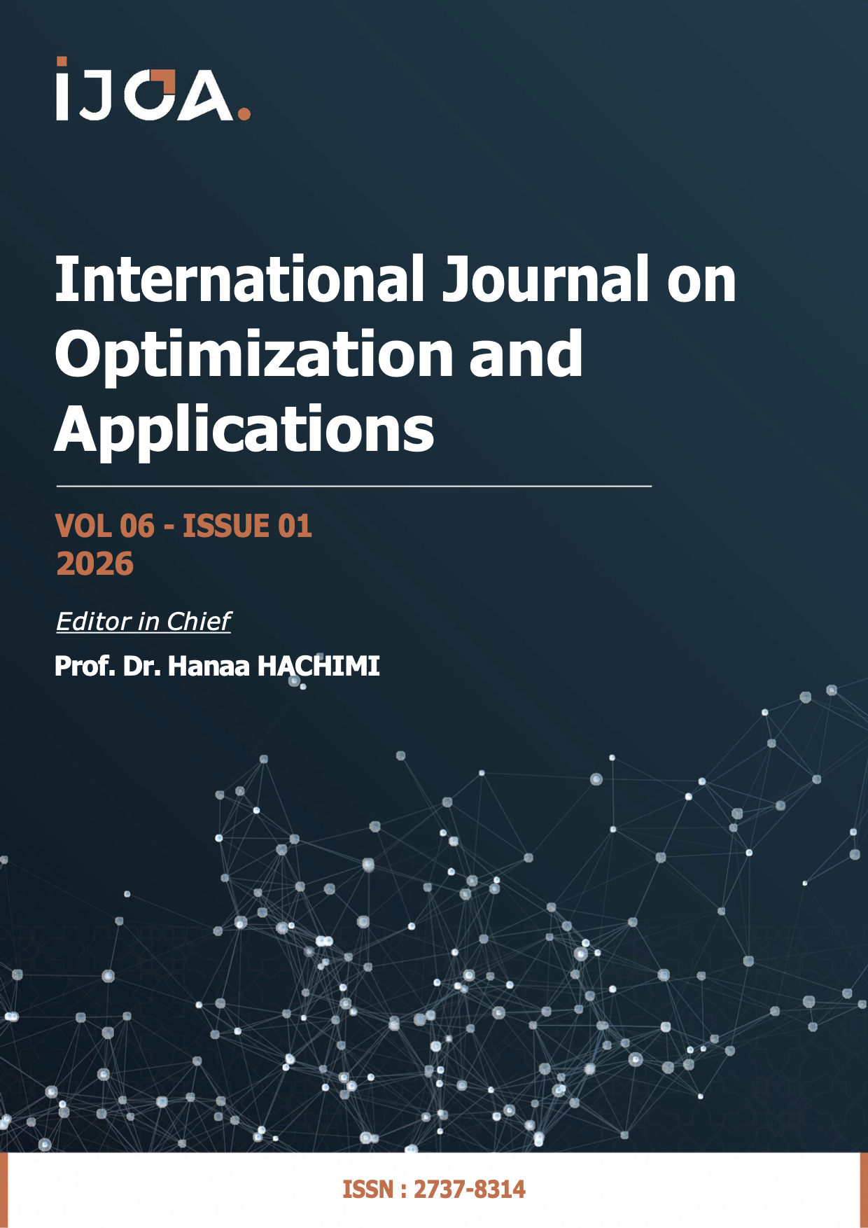 The International Journal on Optimization and Applications (IJOA, ISSN : 2737-8314) is an open access, double blind peer-reviewed online journal aiming at publishing high-quality research in all areas of :Optimization, Applied mathematics, Engineering science, Artificial intelligence, Numerical Methods, Embedded Systems, Electric, Electronic engineering, Telecommunication Engineering, Economy and Finance, Digital Management, E-Marketing… the IJOA begins its publication from 2021, by 3 Issues per Volume per Year (one Issue each 4 months). The journal is enriched by very important special manuscripts that deal with problems using the latest methods of optimization. It aims to develop new ideas and collaborations, to be aware of the latest search trends in the optimization techniques and their applications in various fields.
